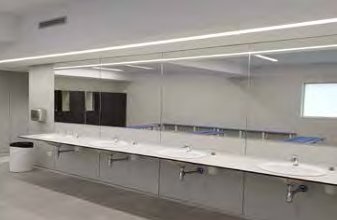 La reforma interior dels vestidors ha comportat l’enderroc i el desamiantat, la redistribució i la renovació integral dels revestiments i de les instal·lacions, adequant-les a la normativa vigent.