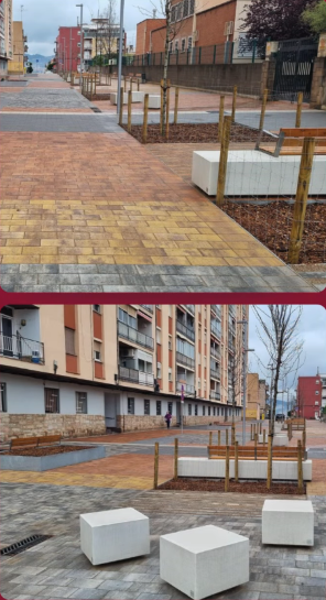 🔹 Plaça de la Solidaritat renovada: Nou paviment, banc semicircular i més vegetació (arbusts i arbrat).