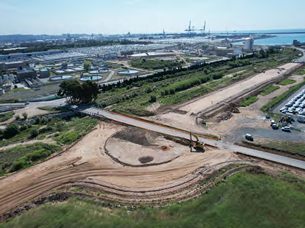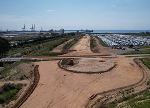 Para llevar a cabo el proyecto, en primer lugar, se estabilizó el terreno con cemento y, antes de extender las capas de asfalto, se aplicó una capa de suelo-cemento. Finalmente, se colocó un muro prefabricado para delimitar las diferentes zonas.